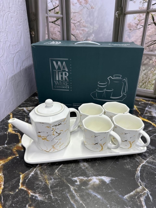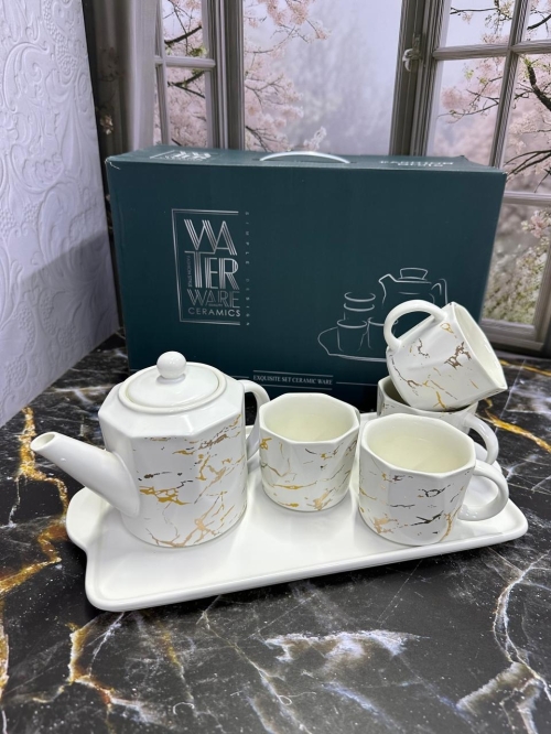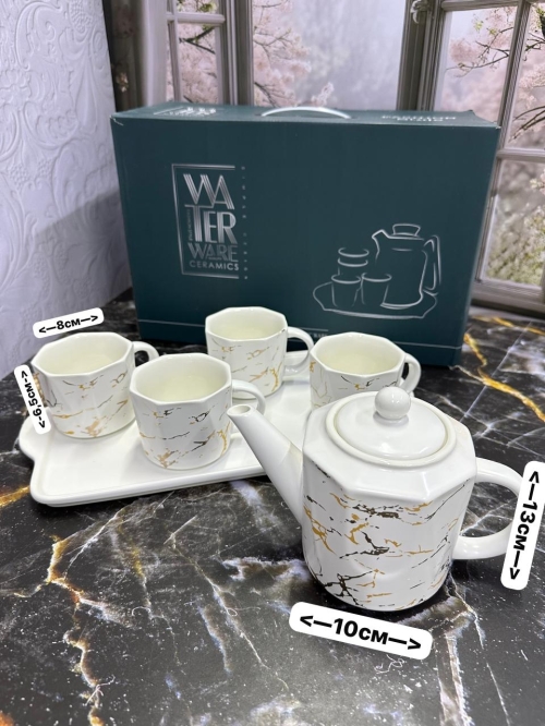 Керамический чайный набор 6в1 (Чайник, кружки, поднос бамбук)